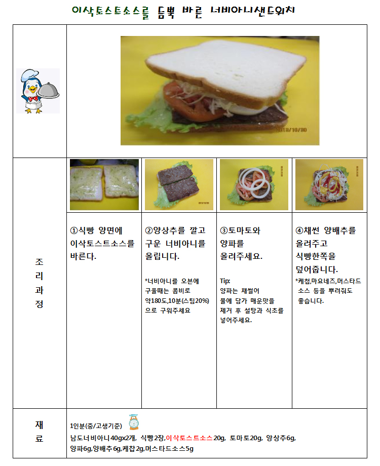 이삭토스트소스를 듬뿍 바른 너비아니샌드위치
